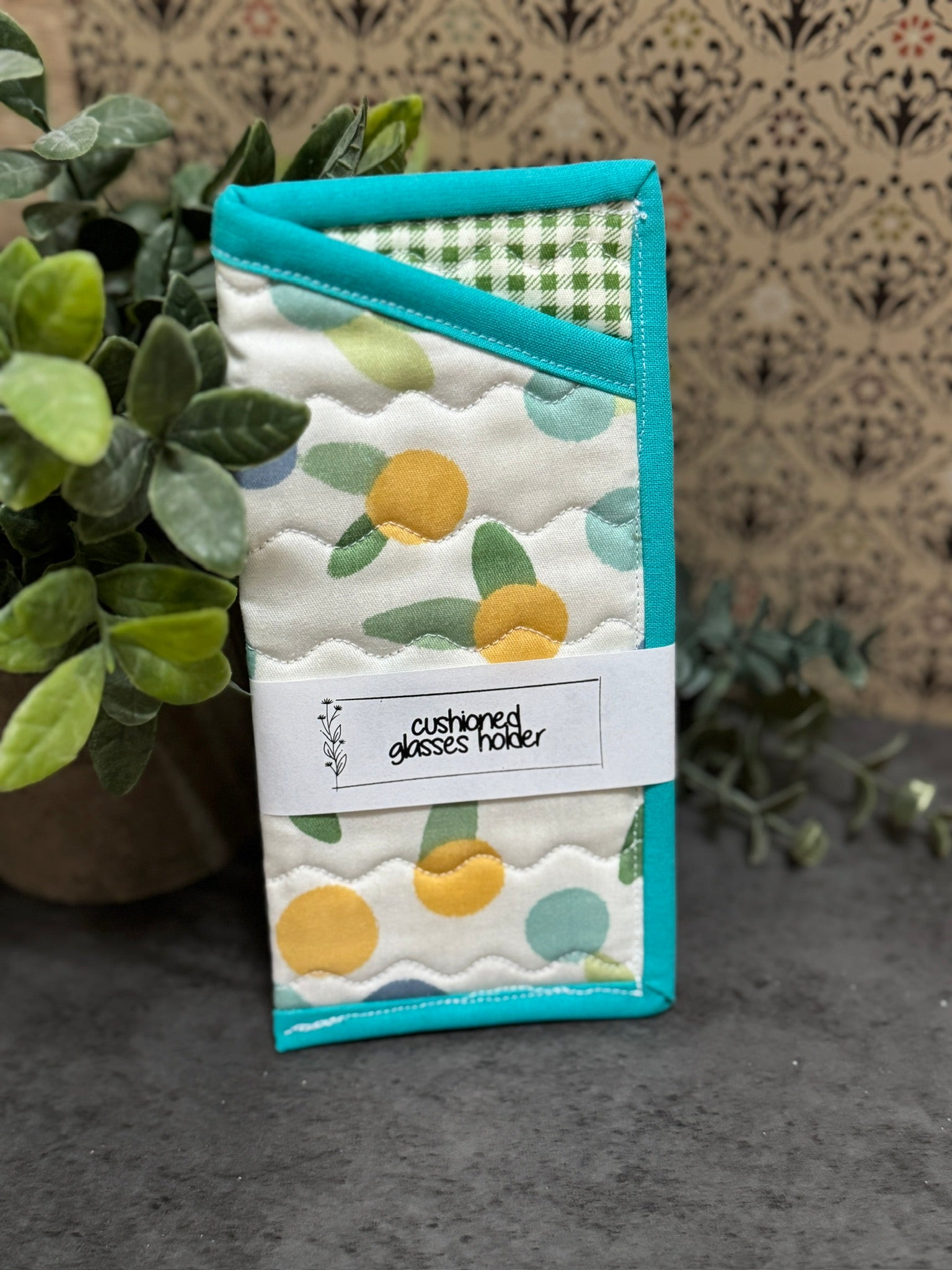 This glasses sleeve is made of high quality 100% cotton fabric with 100% cotton batting to protect your glasses from scratches. Fully lined with a coordinating print.