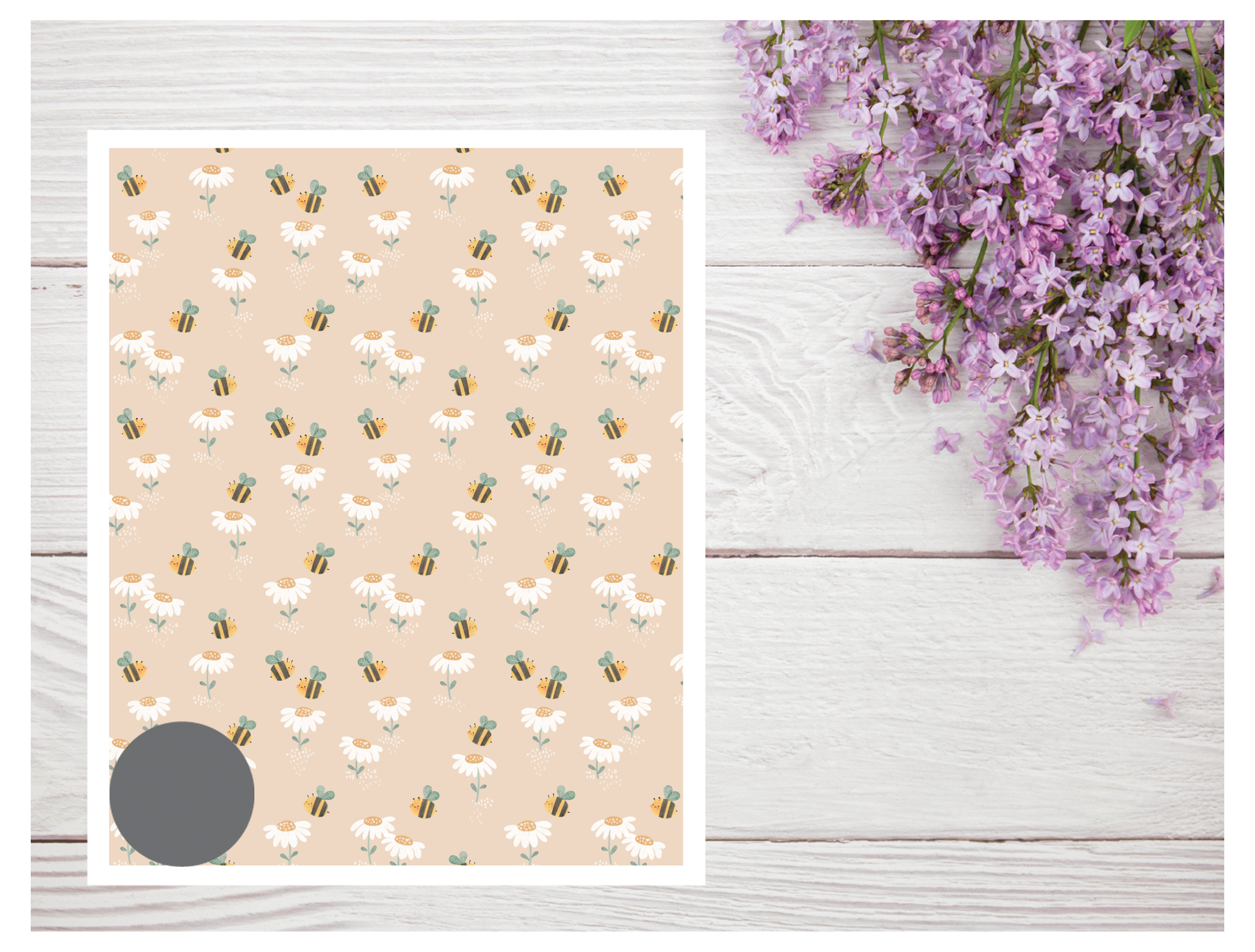 Papers are 4” x 5” Note the gray circle is 1" diameter and is superimposed to show scale, it's not printed on the final piece.