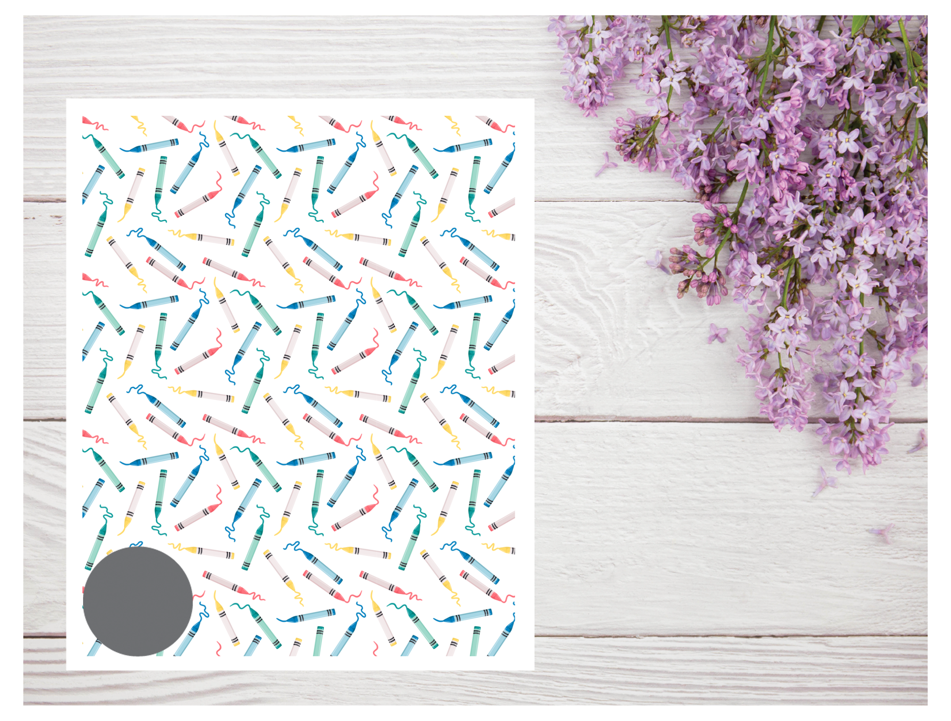 Papers are 4” x 5” Note the gray circle is 1" diameter and is superimposed to show scale, it's not printed on the final piece.