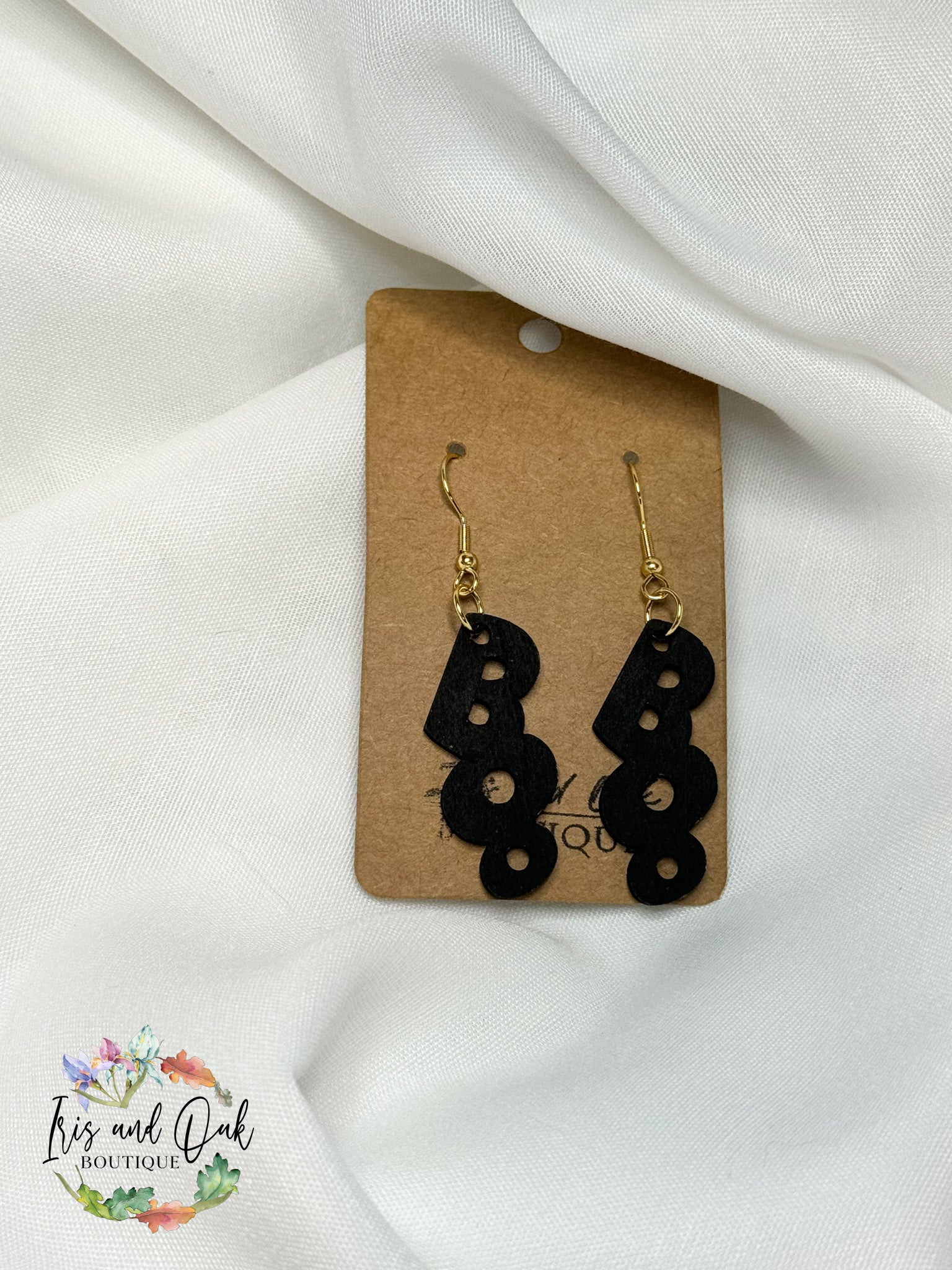 Get into the spooky spirit with our Black "Boo" Wooden Earrings! These handpainted wooden earrings feature a sleek black design with the word "boo" written in playful, quirky font. Perfect for adding a touch of fun to any Halloween outfit!