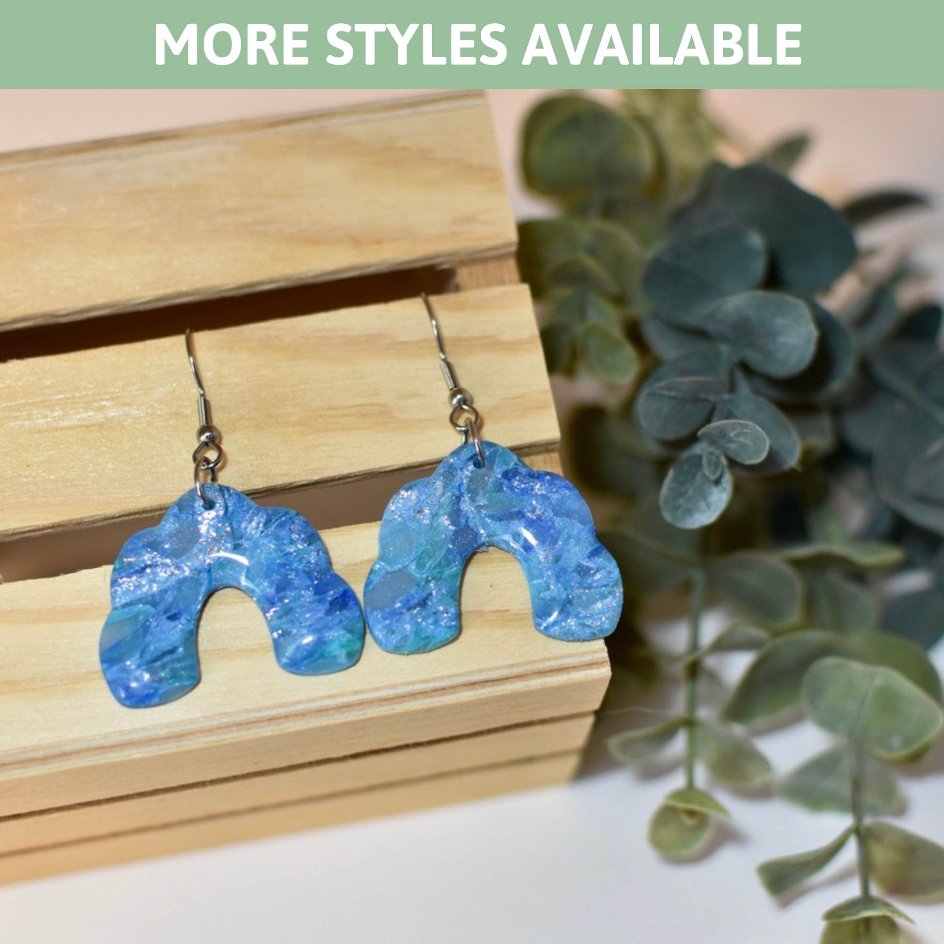 All polymer clay earrings are handmade using high quality polymer clay and other materials. Earrings may use foil leaf, mica powder, alcohol inks, and acrylic paint in the final designs.