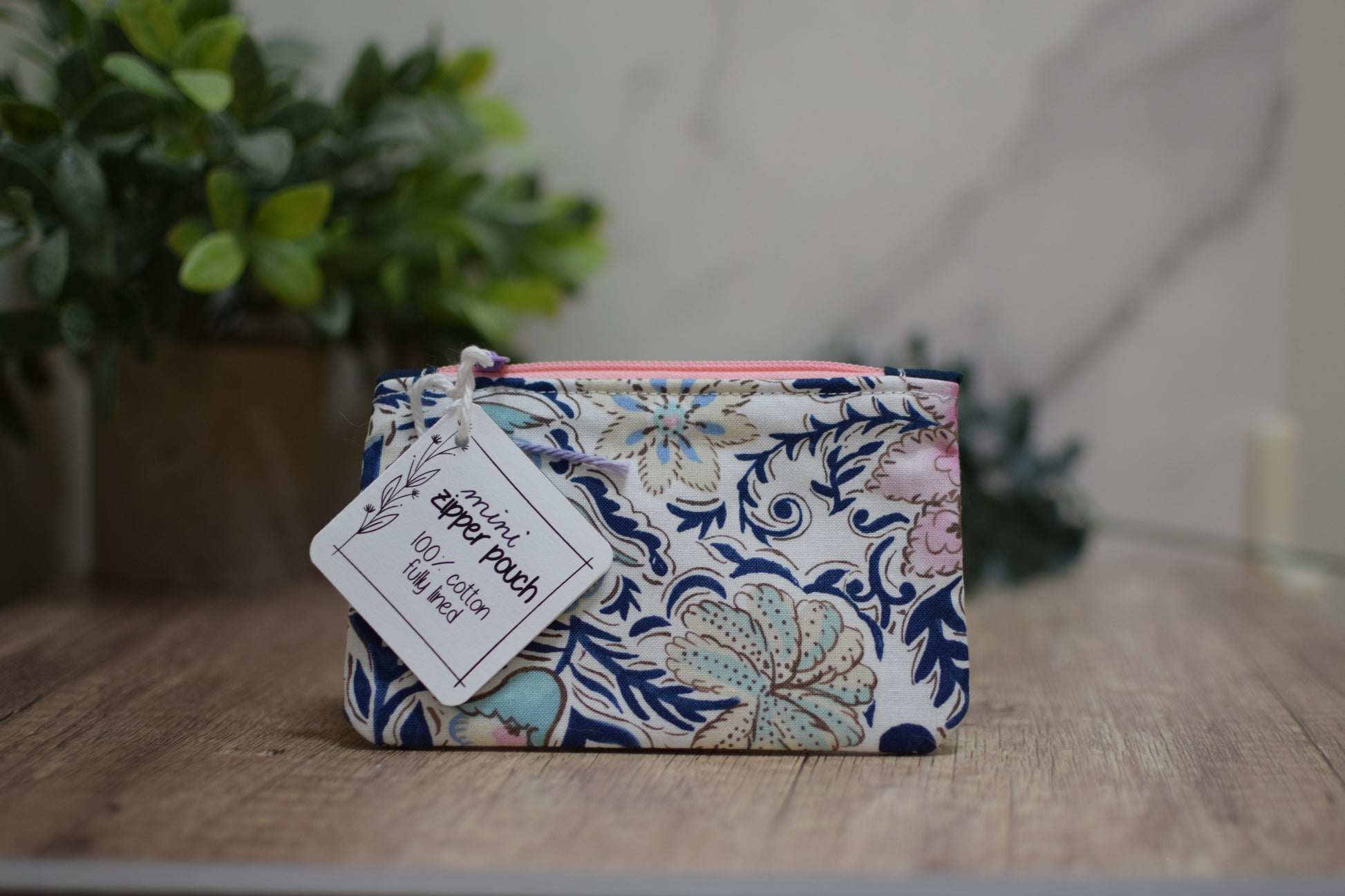 Zipper/Zipper tabs, and interior color will vary from pouch to pouch. All will be in coordinating colors/prints.