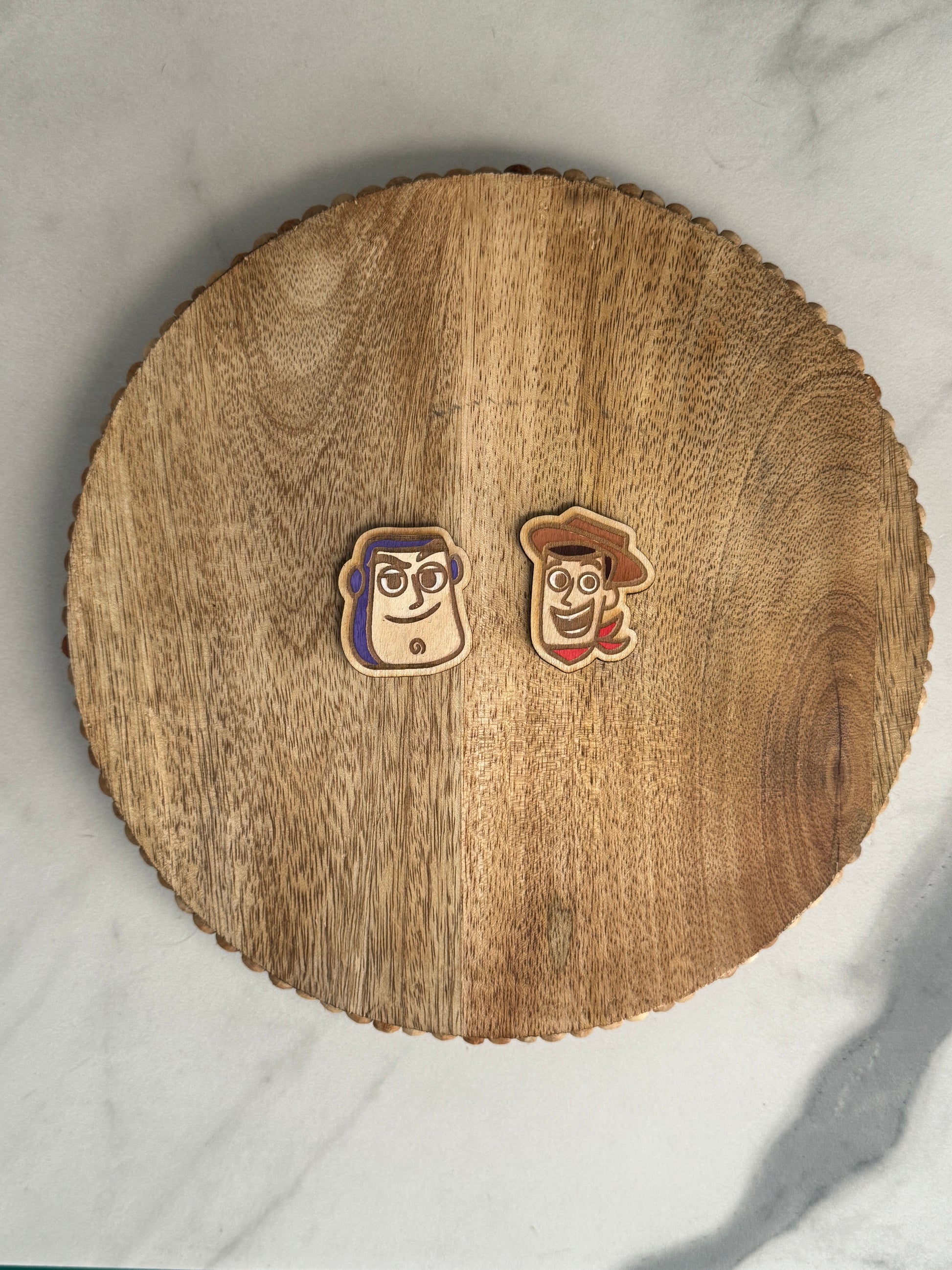 Made of wooden material, each hand-painted magnet stands at 1" - 1.5" tall and backed with a strong magnet. Magnets are super glued, but please take care around children.