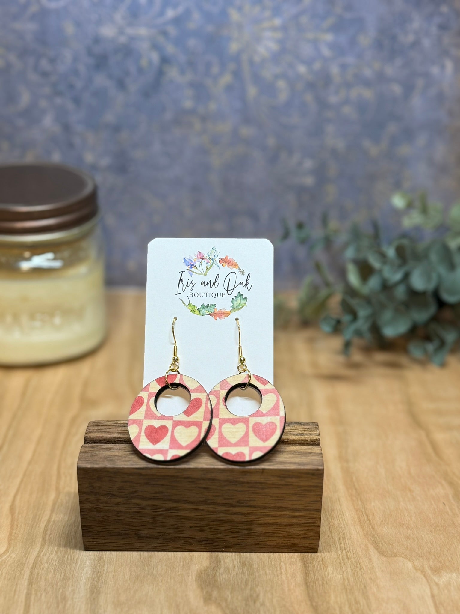Spread love and style with these Checkered Heart Dangles. These Valentine's themed wooden earrings feature a charming heart pattern that will surely steal hearts. Show off your unique and playful fashion sense with these quirky dangles.