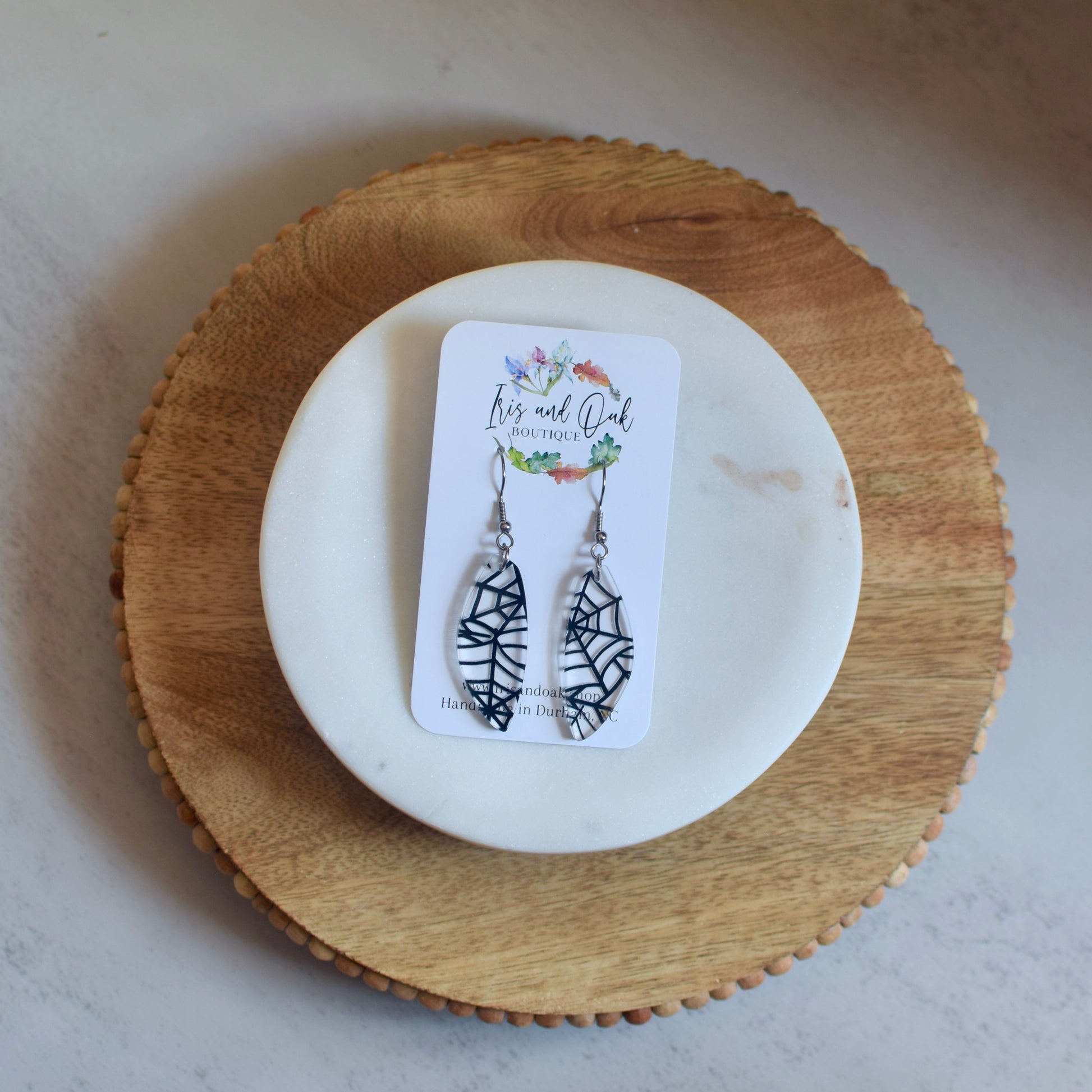 UV printed acrylic, lightweight, stainless steel findings.
