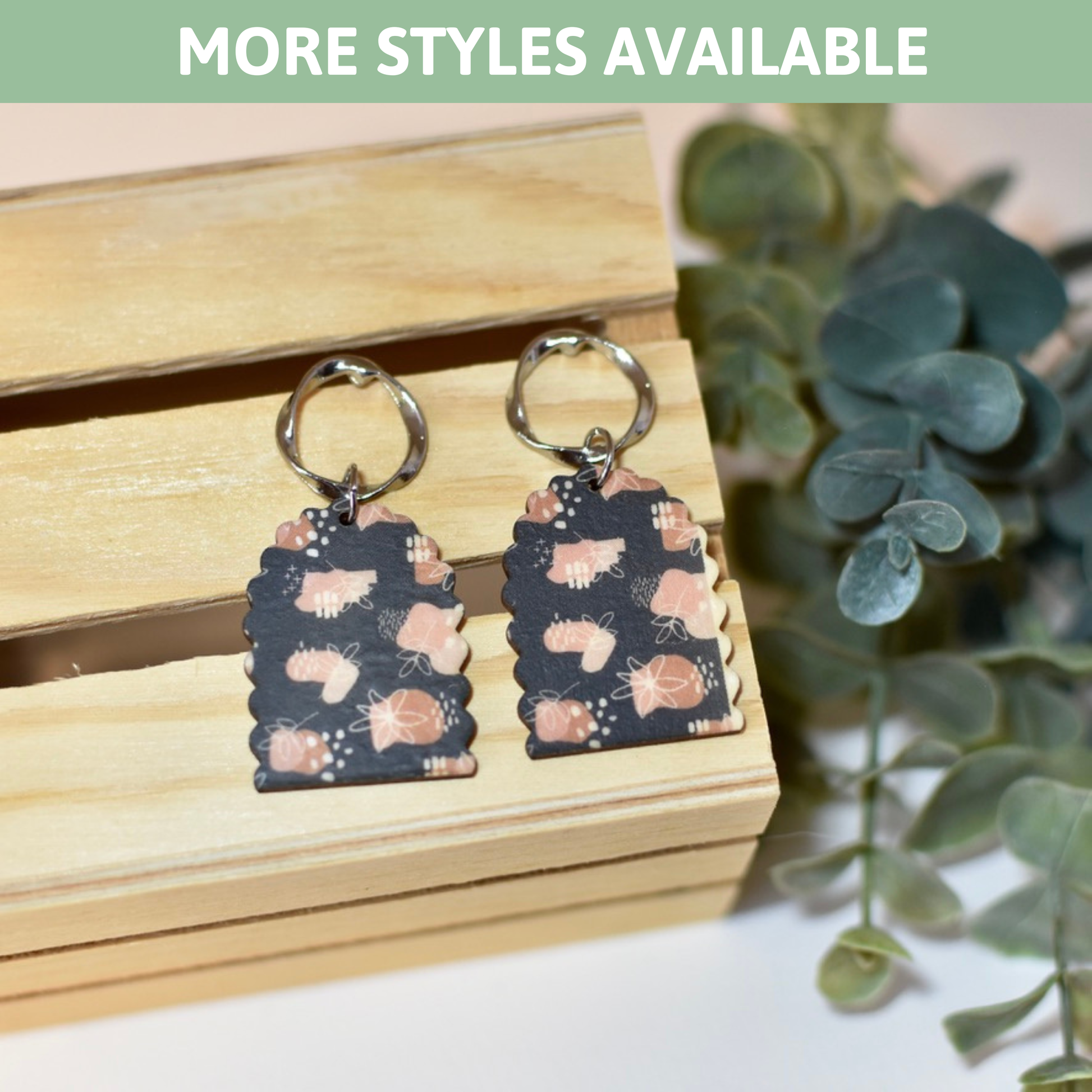 All wooden earrings are crafted by hand, leveraging a laser cutting machine for engraving and cutting shapes. I use gouache, watercolor, and acrylic paints and seal with a clear coat.