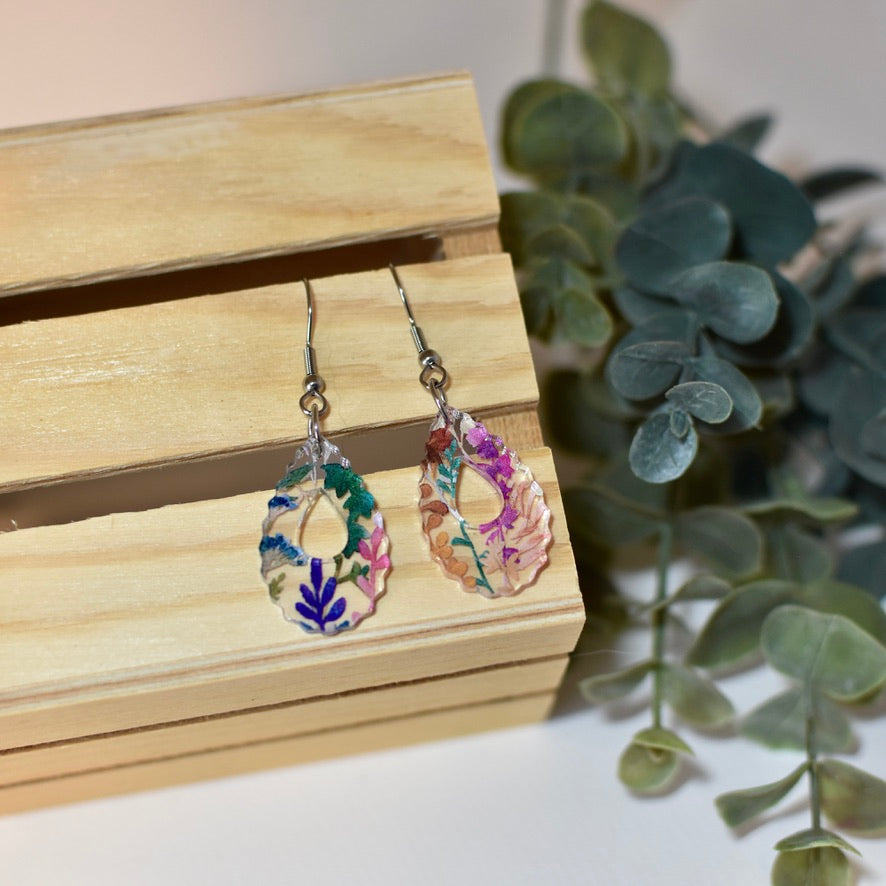 Jewel-toned flowers adorn this acrylic to make some gorgeous earrings.