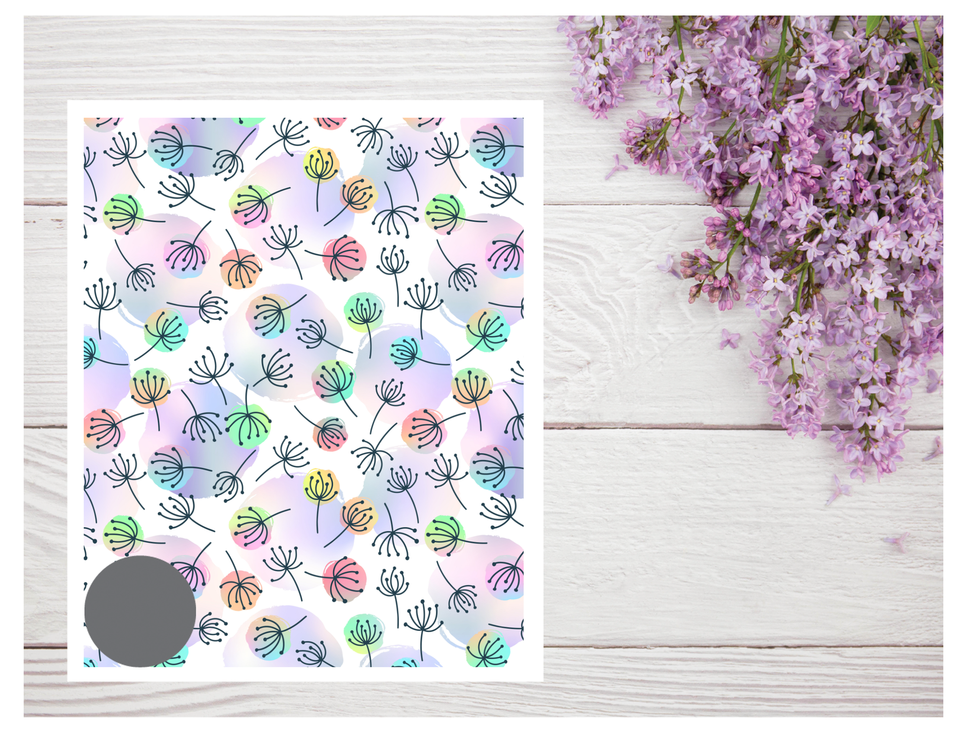Papers are 4” x 5” Note the gray circle is 1" diameter and is superimposed to show scale, it's not printed on the final piece.