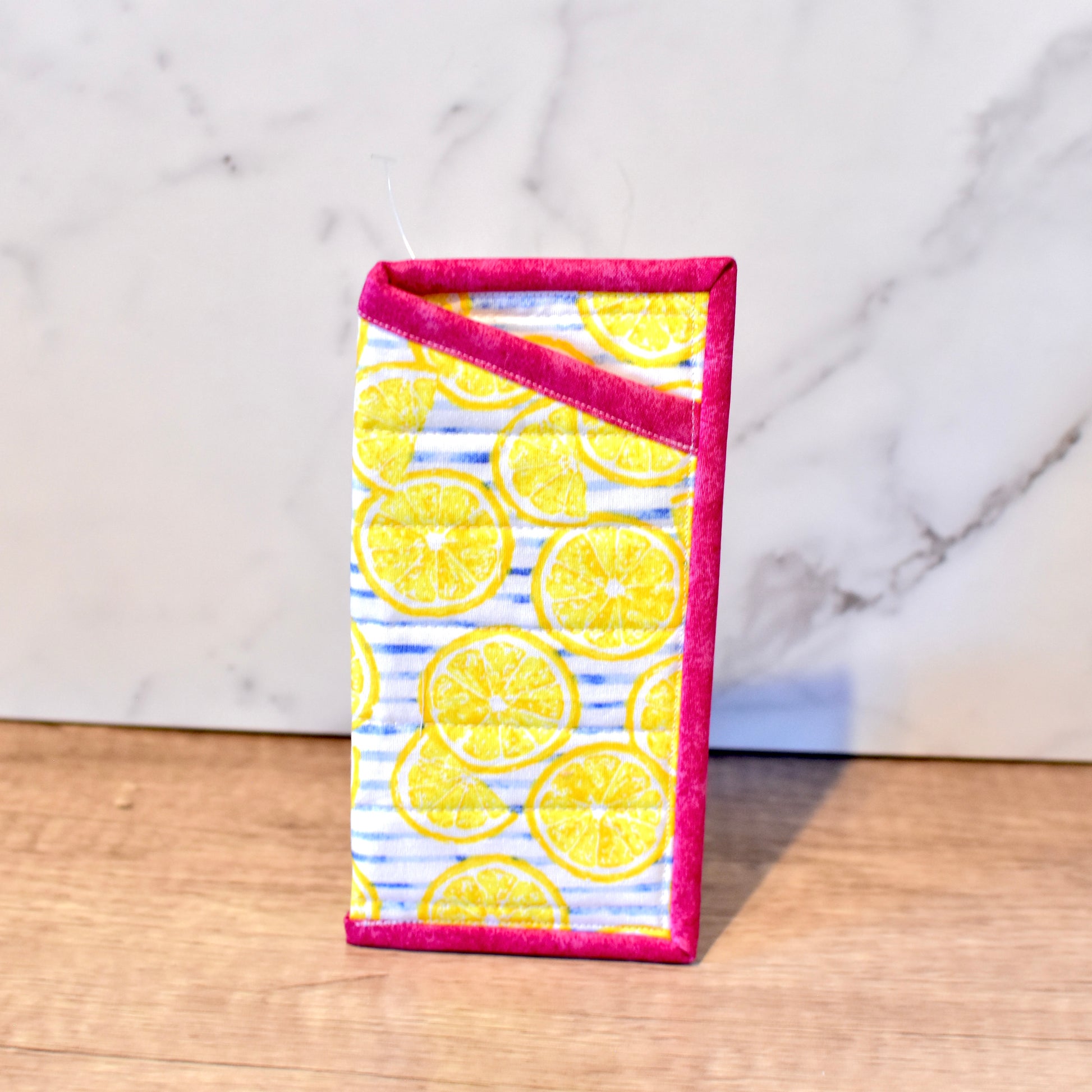This glasses sleeve is made of high quality 100% cotton fabric with 100% cotton batting to protect your glasses from scratches. Fully lined with a coordinating print.