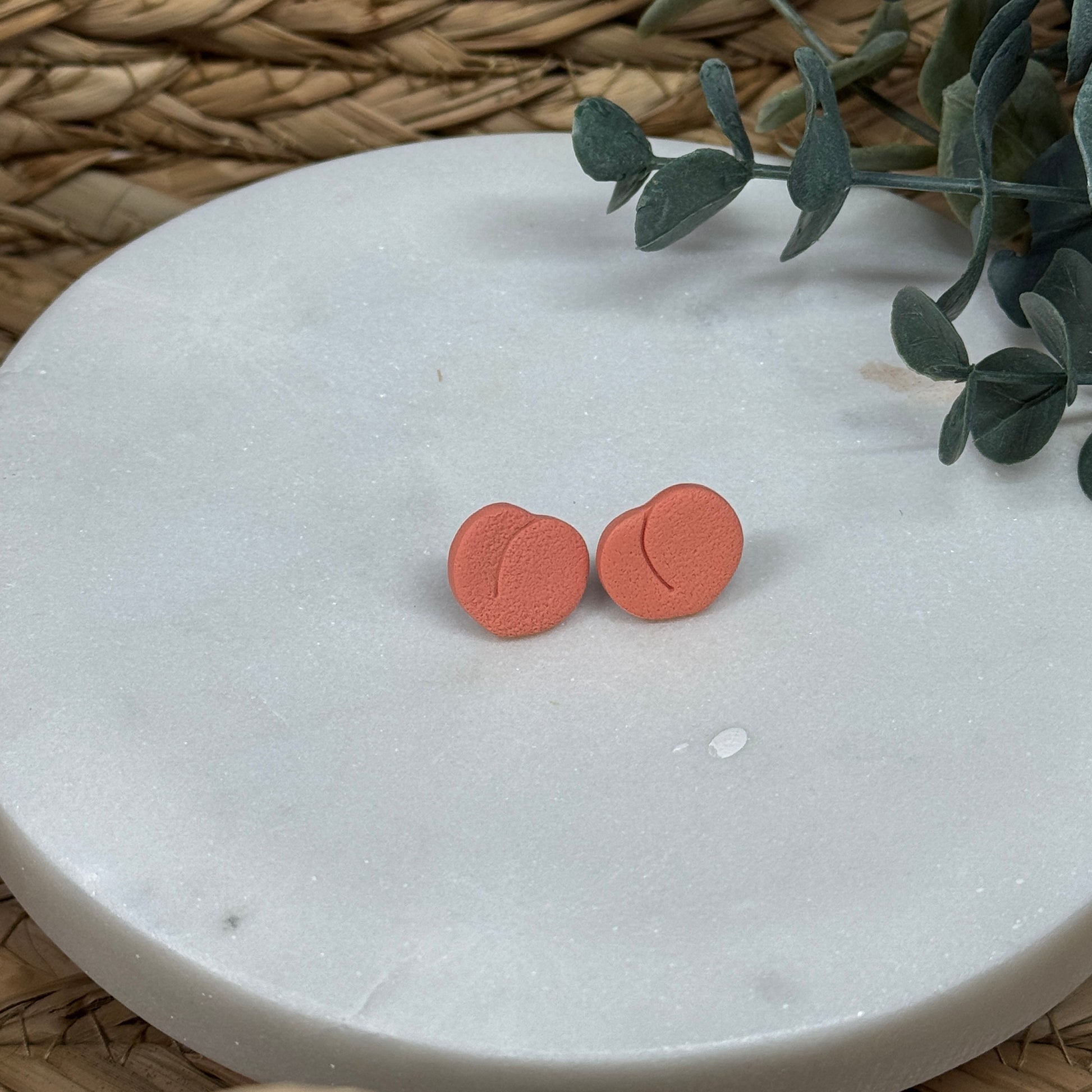 These Fruit Studs (Peaches) are the perfect accessory to add a touch of fun and playfulness to your outfit! Made with peach polymer clay, these unique studs are sure to make a statement and add a pop of color. Upgrade your earring game with these quirky and adorable studs.
