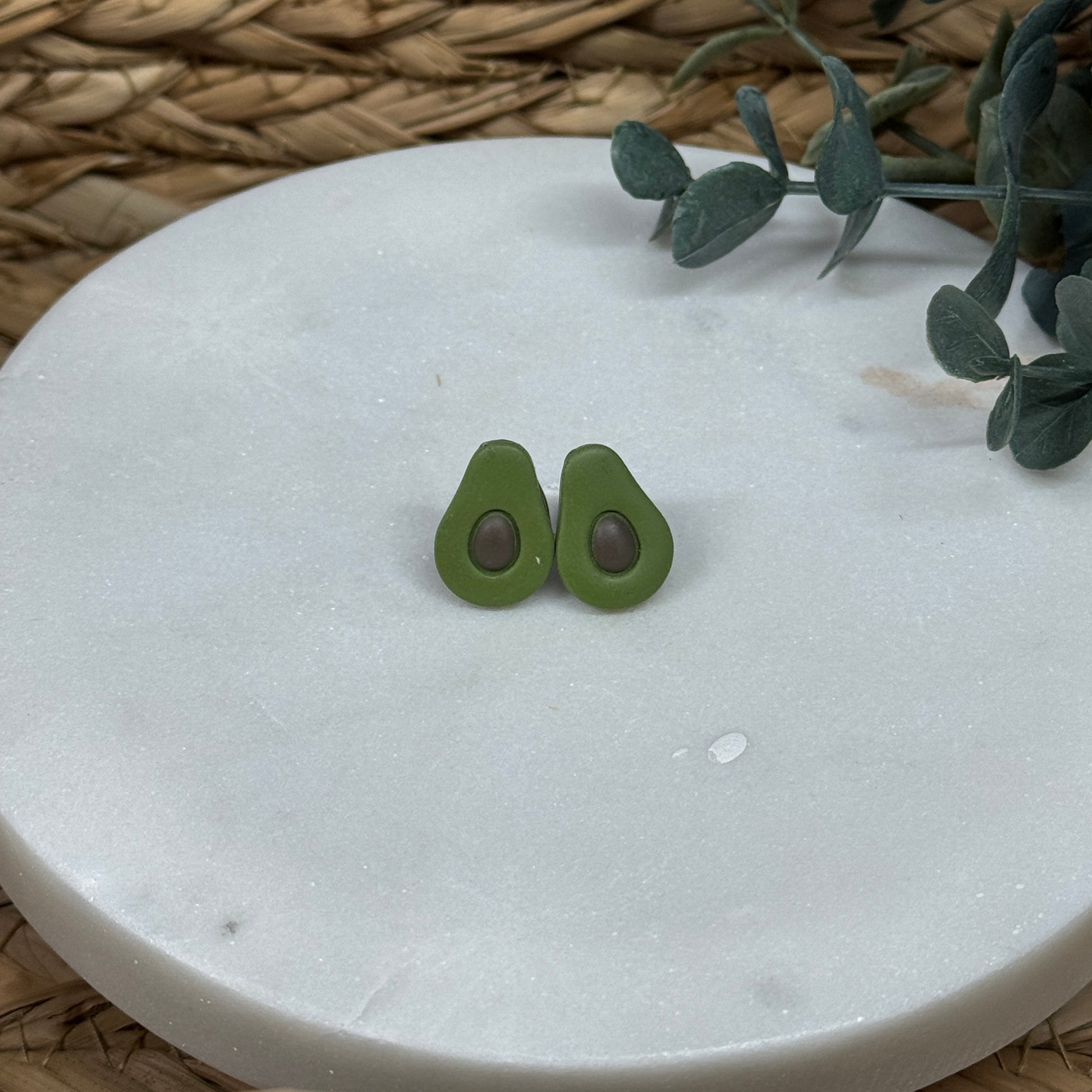 Add some organic flair to your style with our Fruit Studs in the shape of ripe avocados. These unique studs are handcrafted from polymer clay, making them lightweight and comfortable to wear all day. A perfect statement piece for any fashion-forward fruit lover!