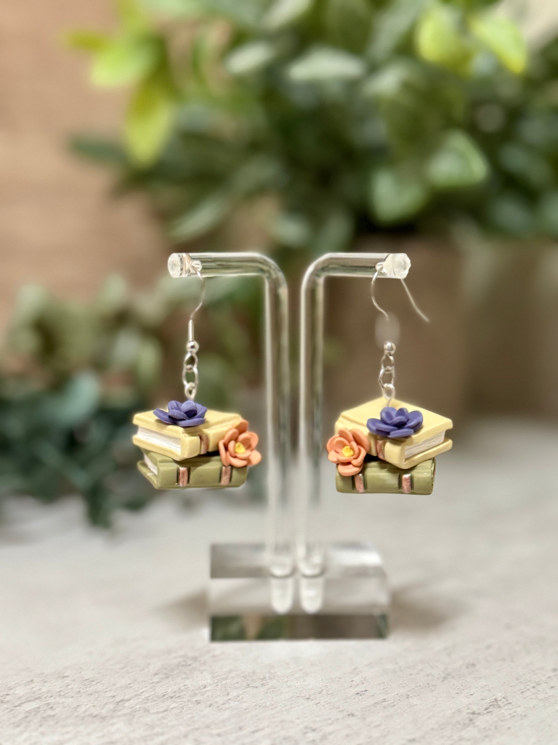 Polymer clay earrings with sculpted flowers.