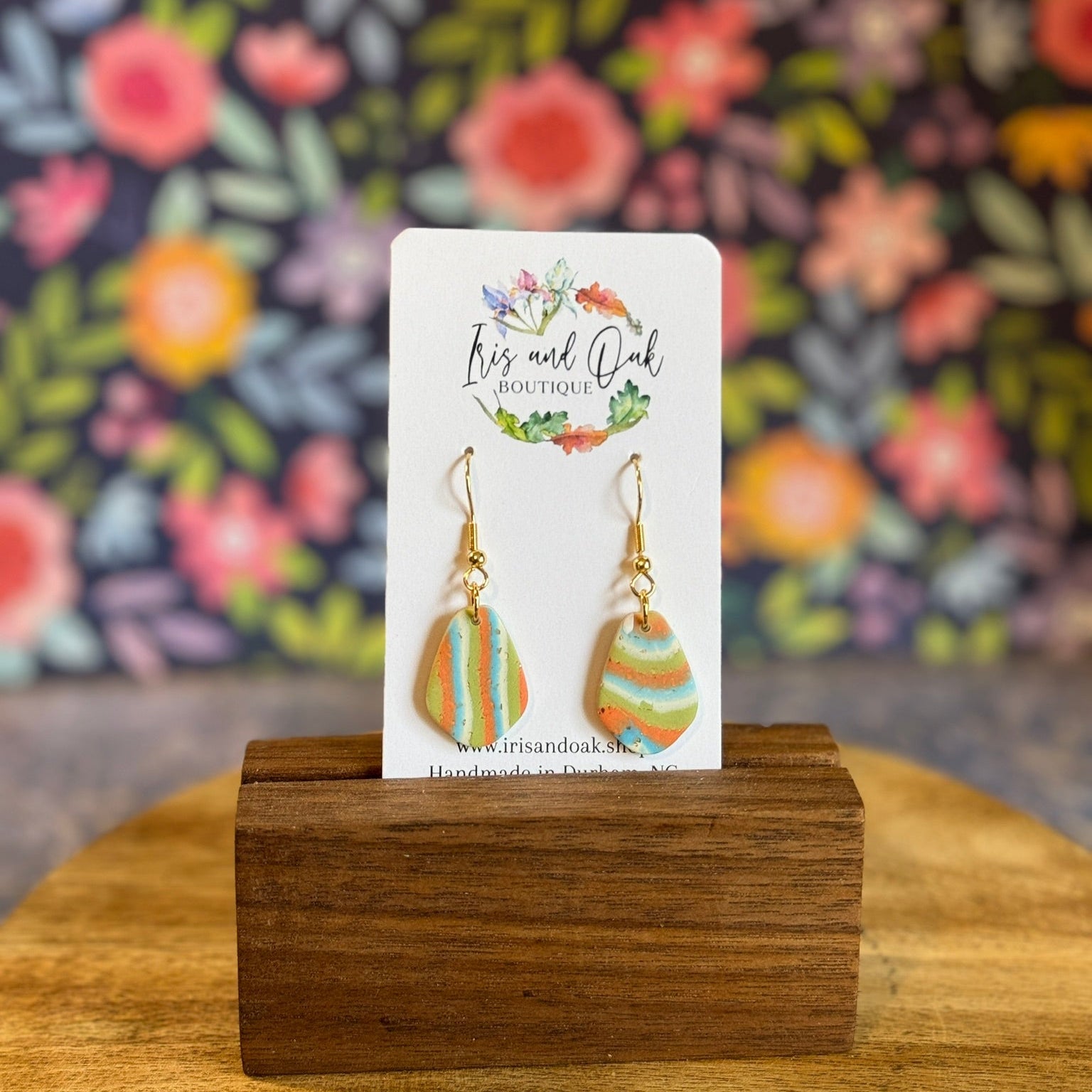 Polymer clay with flashes of silver and dots of dark grays and blues.
