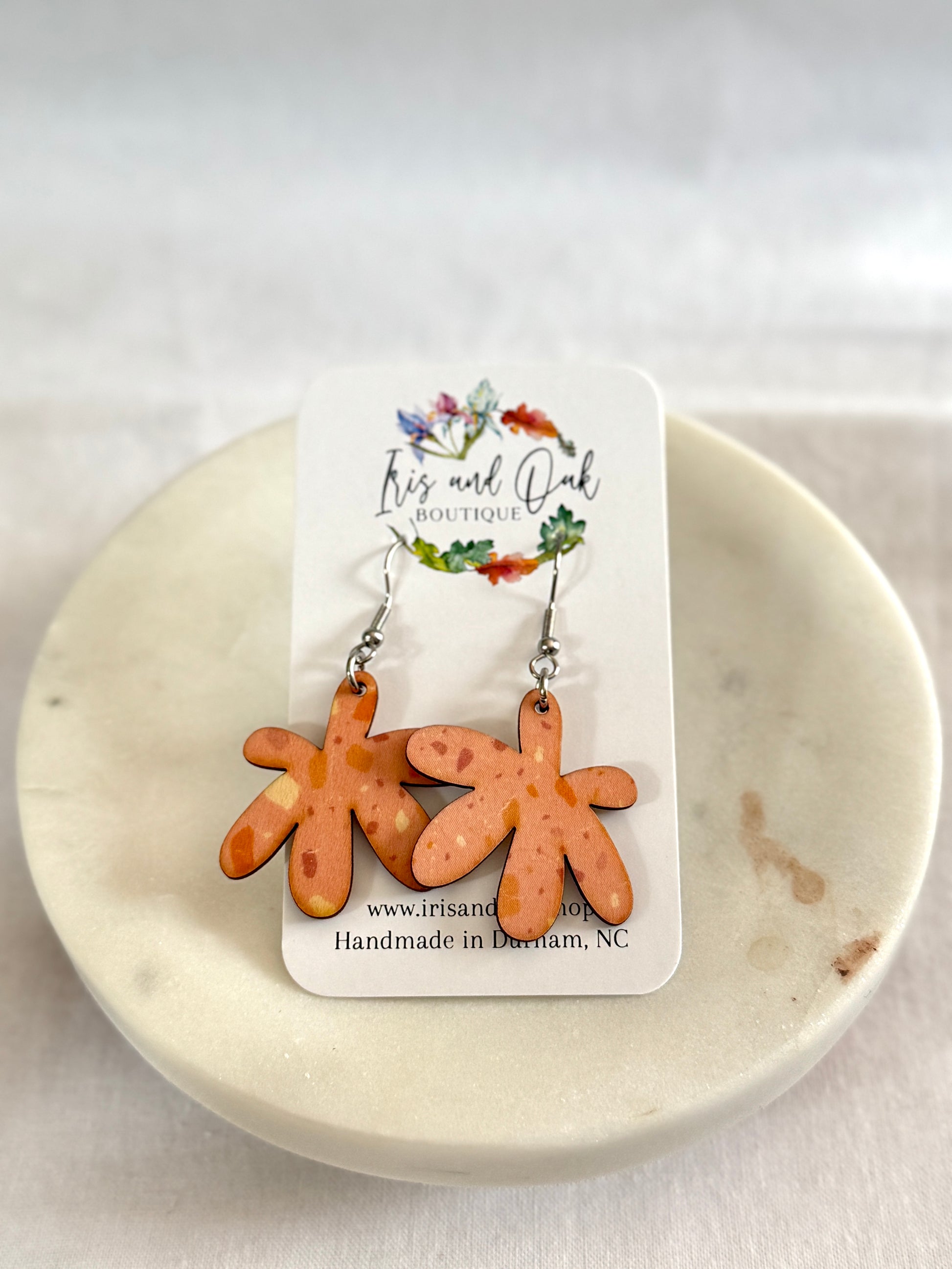 All earrings at Iris and Oak are lightweight and hypoallergenic. All findings are nickel-free surgical stainless steel and can be changed into titanium ear wires if needed. Please reach out if you need a pair of earrings converted to clip-ons.