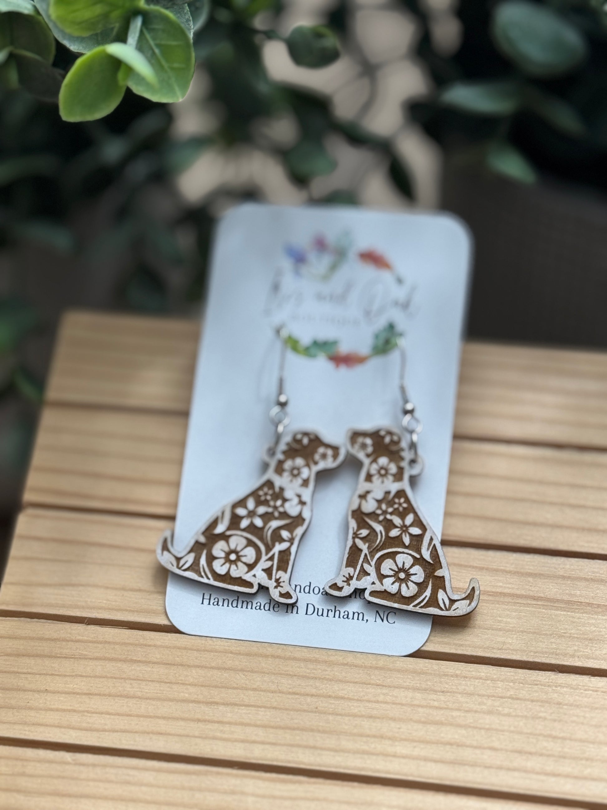 All wooden earrings are crafted by hand, leveraging a laser cutting machine for engraving and cutting shapes. I use gouache, watercolor, and acrylic paints and seal with a clear coat.
