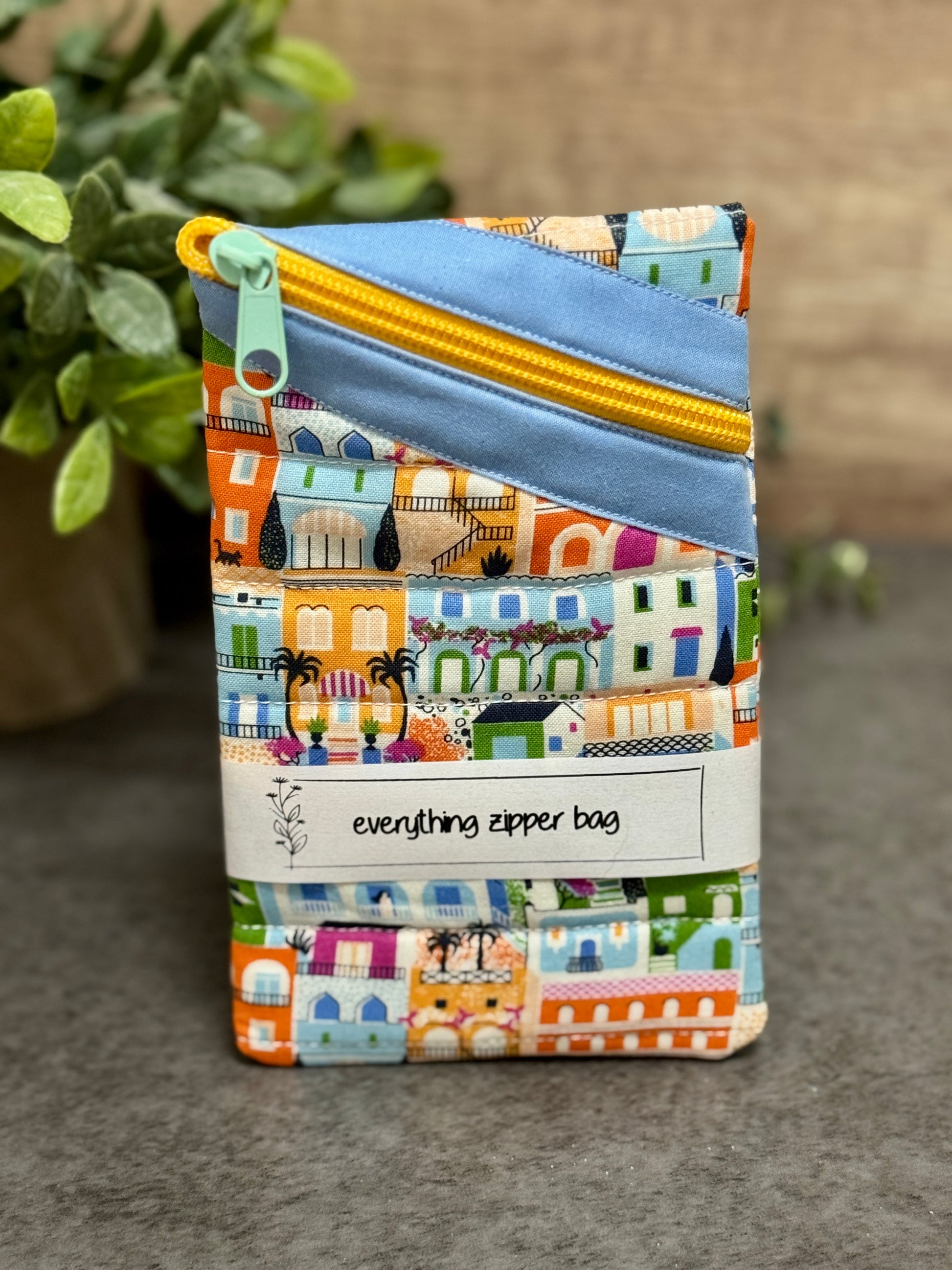Each is handmade and I strive to keep the colors consistent when I make multiples, but note that the pouch you order may differ slightly in the part of the fabric pattern that is visible, the coordinating binding color, the zipper pull, and the zipper.