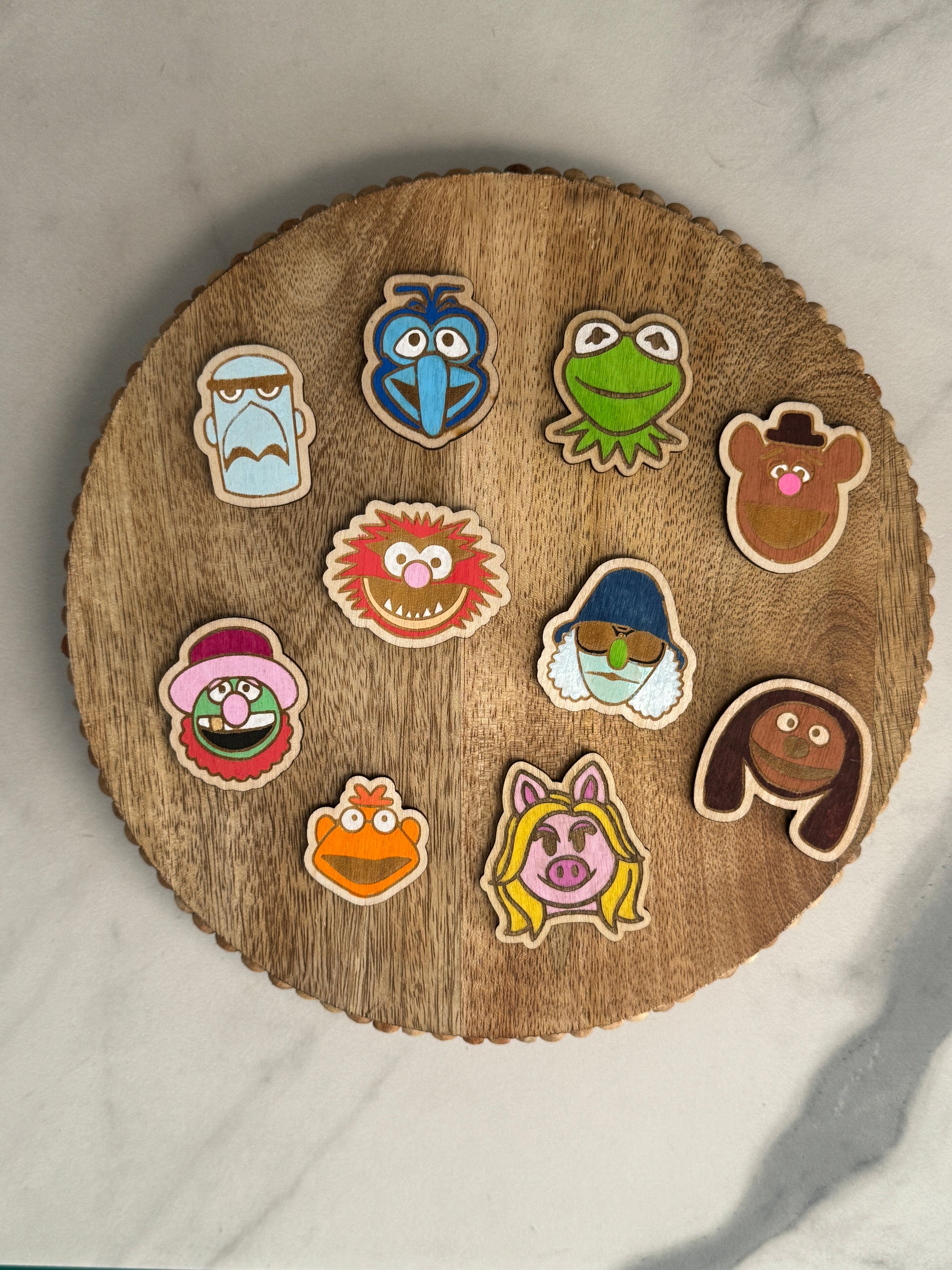 Made of wooden material, each hand-painted magnet stands at 1" - 1.5" tall and backed with a strong magnet. Magnets are super glued, but please take care around children.