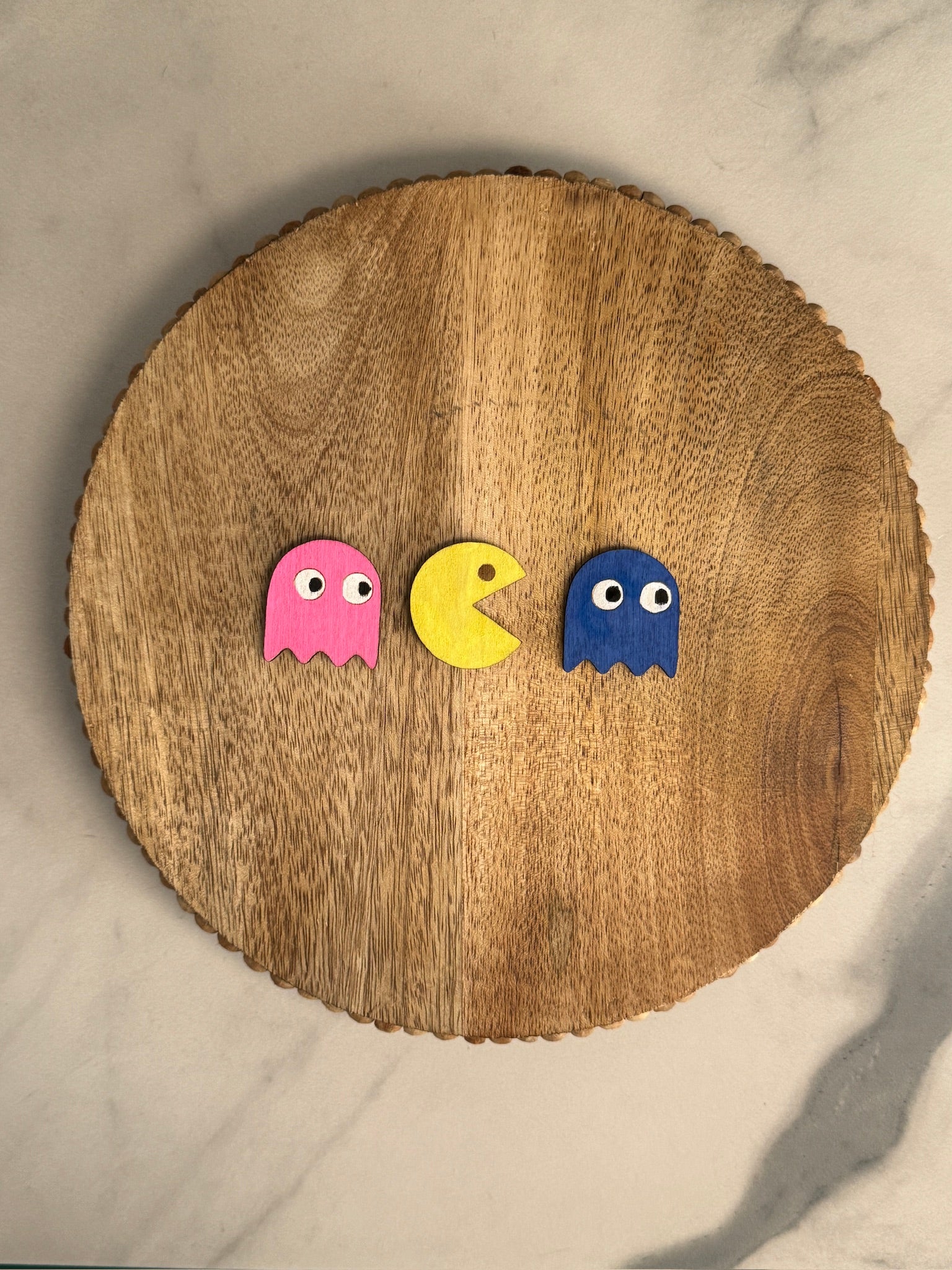 Made of wooden material, each hand-painted magnet stands at 1" - 1.5" tall and backed with a strong magnet. Magnets are super glued, but please take care around children.