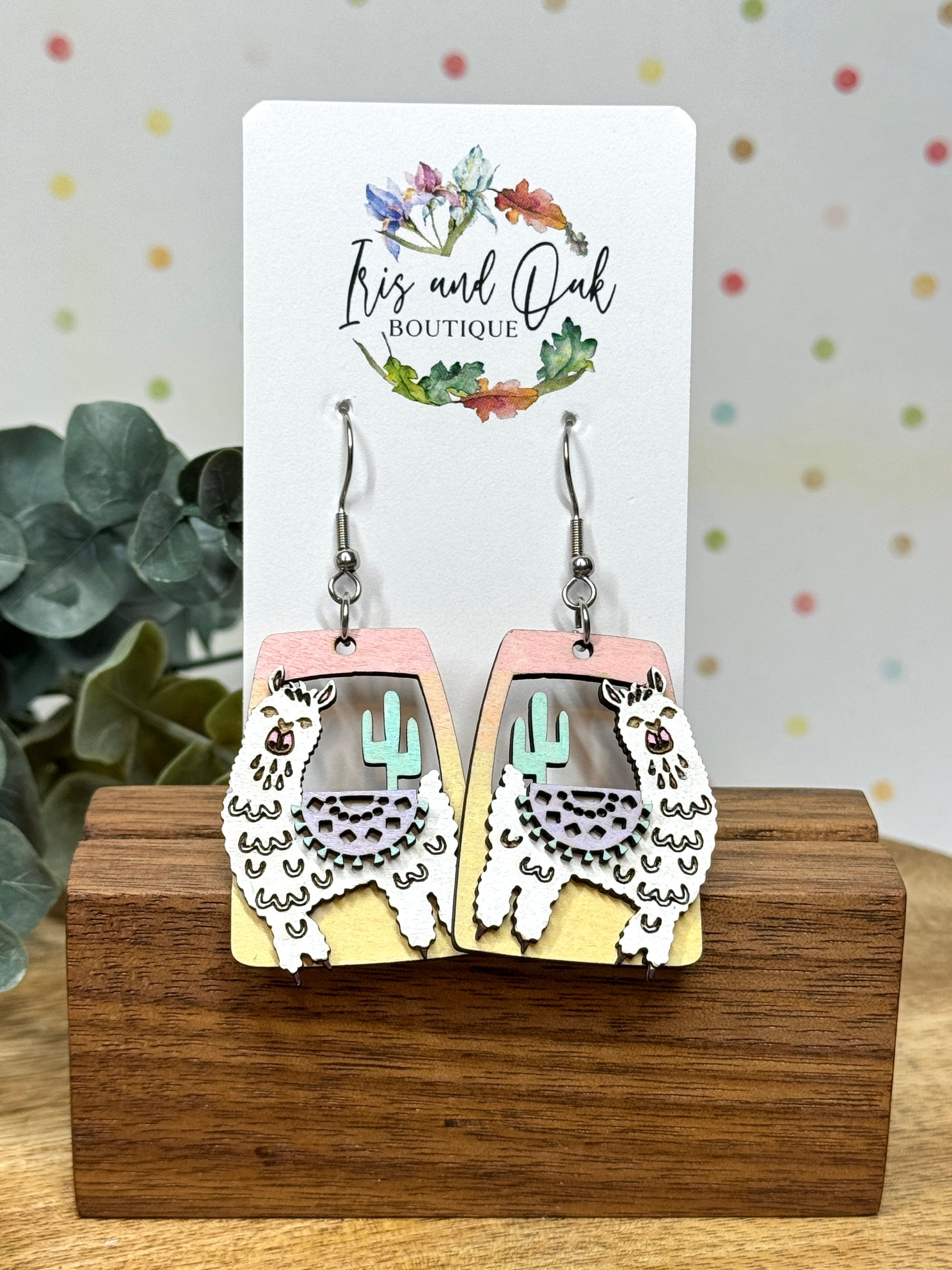 Add a touch of whimsy to your wardrobe with our Pastel Alpacas earrings. These wooden, hand-painted earrings are adorably cute and will add a pop of pastel color to any outfit. Show off your fun and playful side with these quirky alpaca dangle earrings!