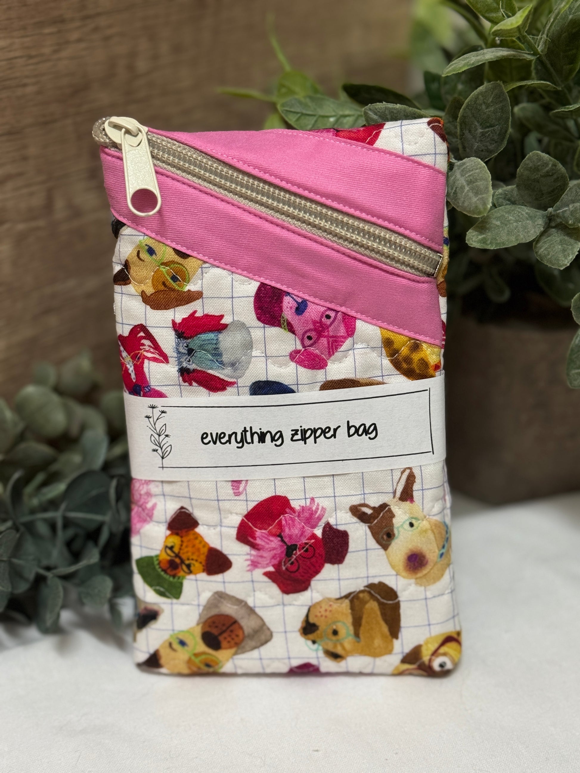 Pouch is made from quality 100% cotton, 100% cotton batting, and a nylon zipper. Interior seams are serged for longevity. To spot clean, use a mild detergent and cold water. Iron on high (but avoid the zipper!) to get rid of any wrinkles.