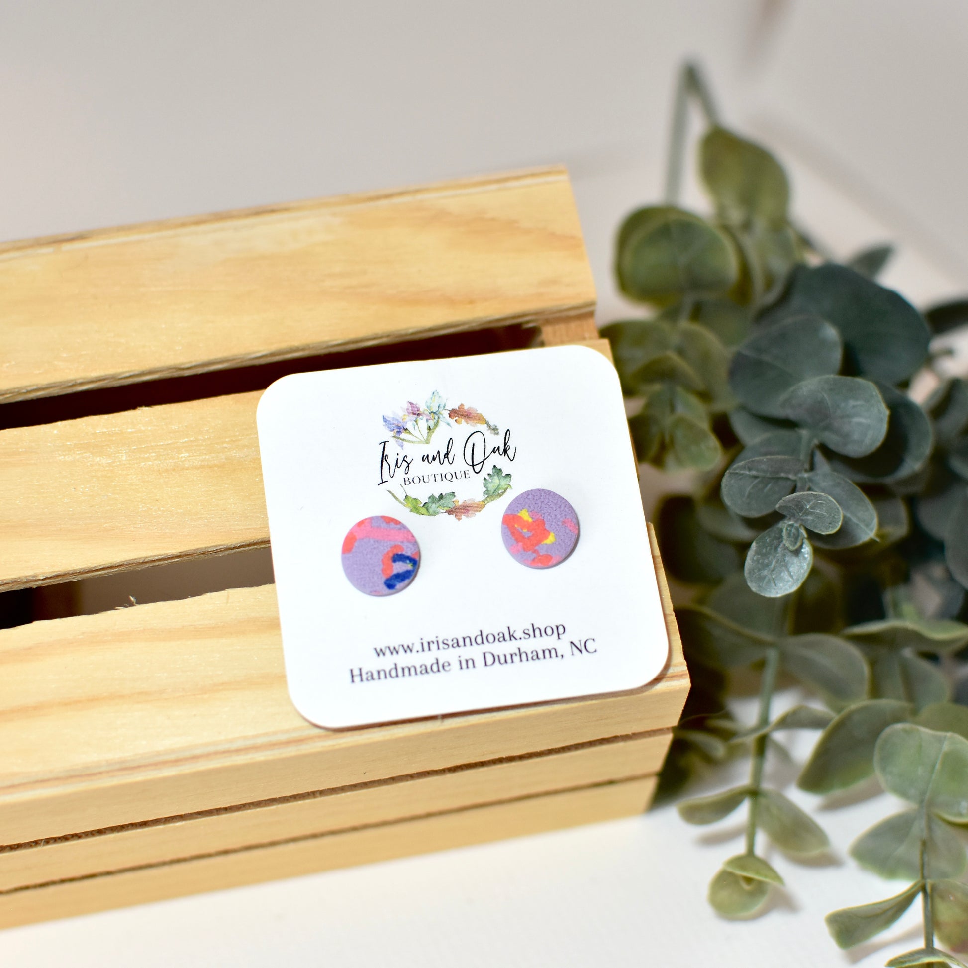 All polymer clay earrings are handmade using high quality polymer clay and other materials. Earrings may use foil leaf, mica powder, alcohol inks, and acrylic paint in the final designs.