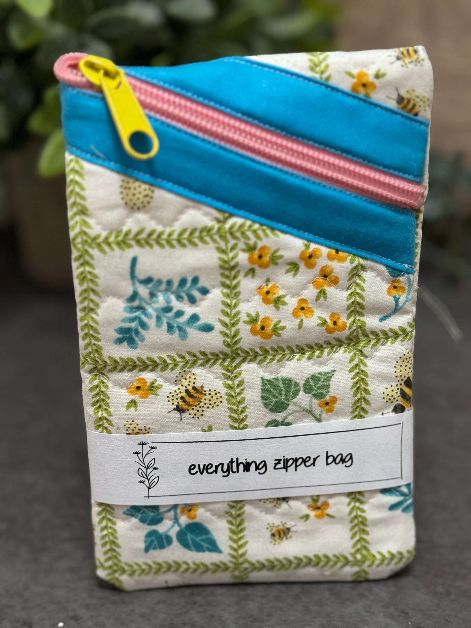 Each is handmade and I strive to keep the colors consistent when I make multiples, but note that the pouch you order may differ slightly in the part of the fabric pattern that is visible, the coordinating binding color, the zipper pull, and the zipper.
