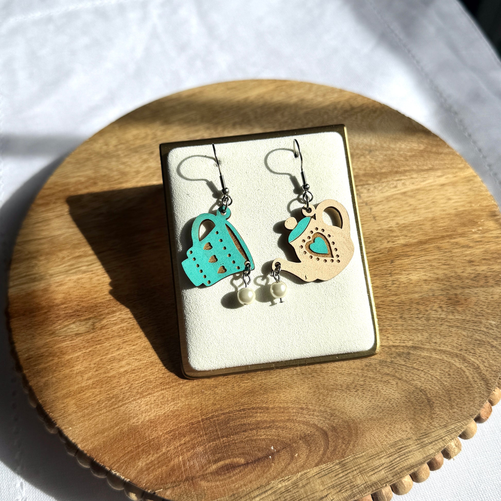 All wooden earrings are crafted by hand, leveraging a laser cutting machine for engraving and cutting shapes. I use gouache, watercolor, and acrylic paints and seal with a clear coat.