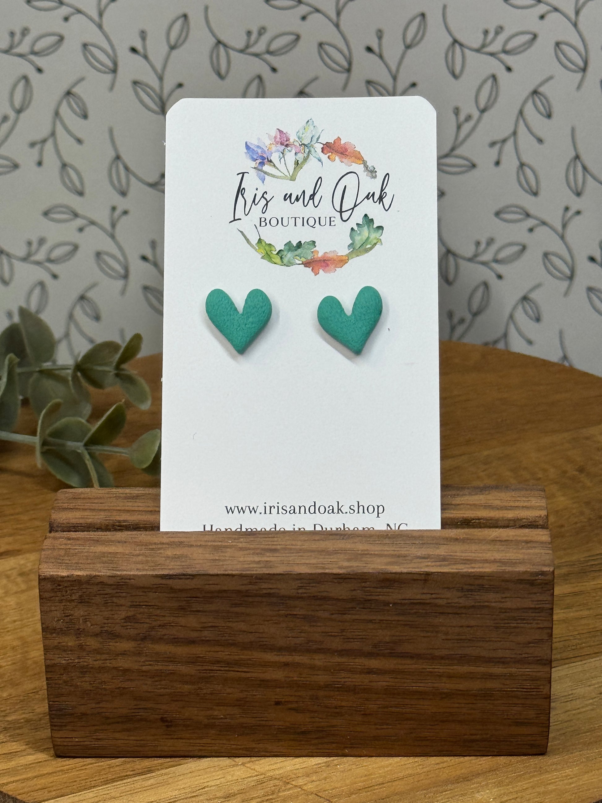 Add a pop of color to your outfit with these cute Teal Heart Studs. Handcrafted with teal polymer clay, these earrings are perfect for any occasion. Whether you want to stand out or add a touch of fun to your look, these studs are sure to make a statement!