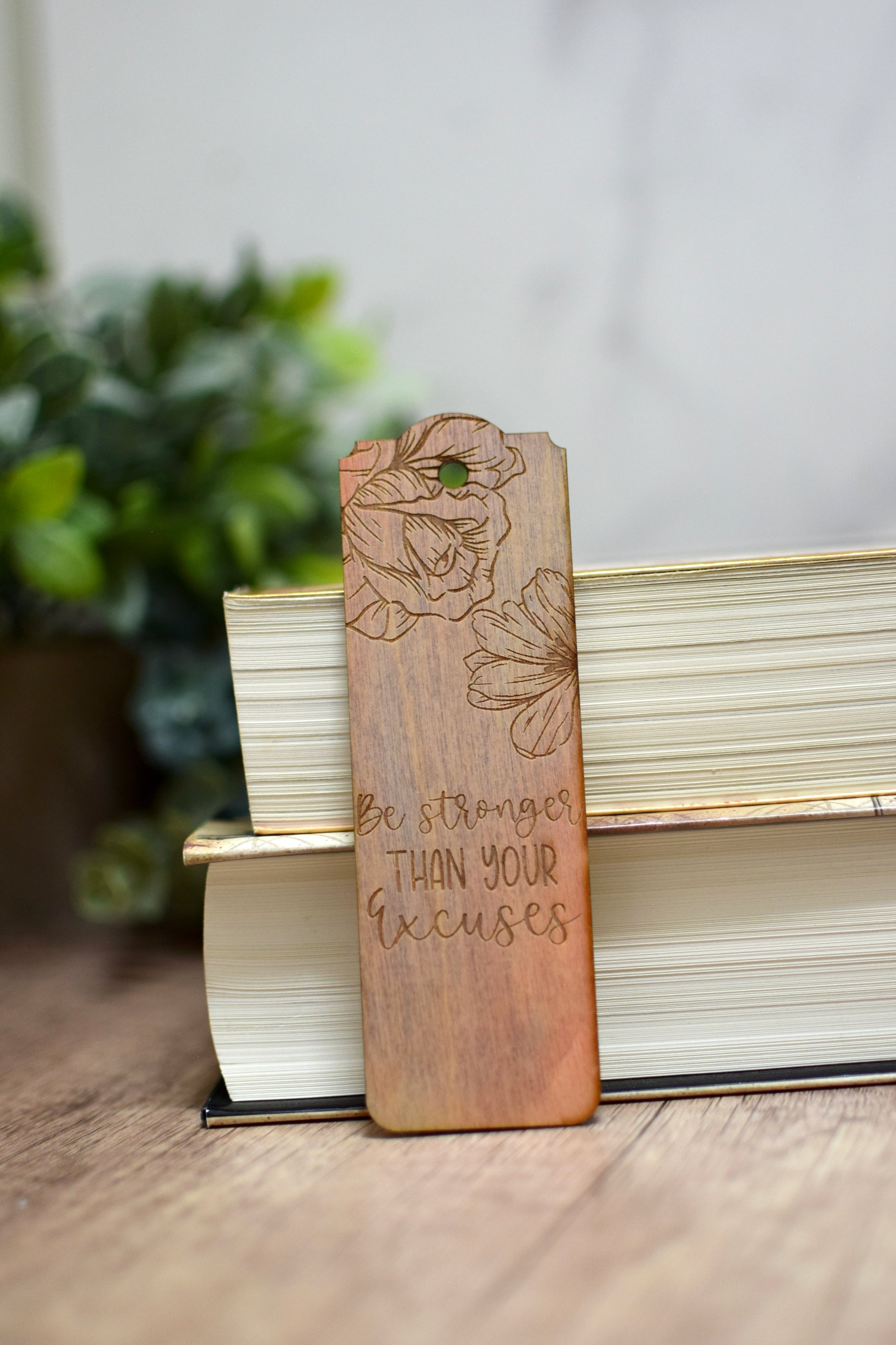 Wooden bookmarks are 1/8" thick and work best in larger hardback books. They are engraved and cut with a laser, and painted with goache and watercolor paints. Bookmarks are approximately 2" x 5"