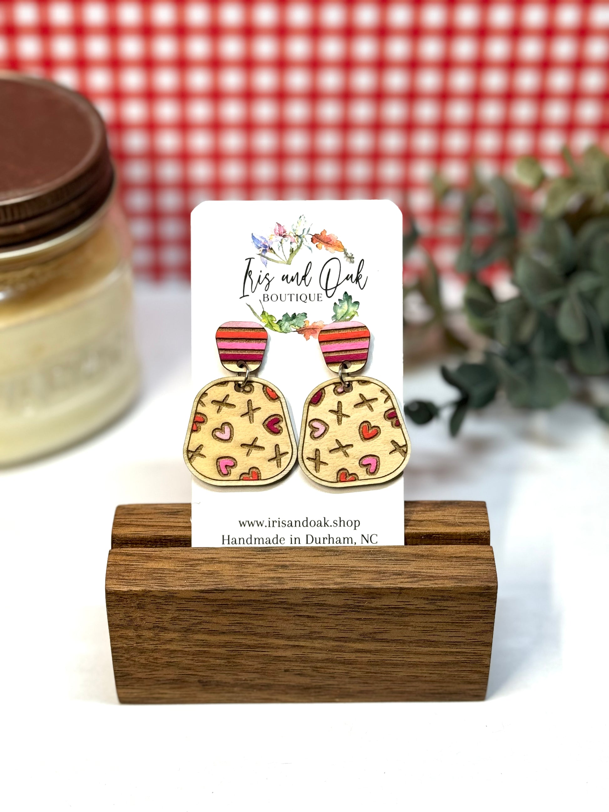 Add a touch of love with the XO Mosaic Dangles! Hand painted on wood, these cute Valentine's earrings feature an "X" and "O" with a heart pattern. Perfect for adding some fun to any outfit, and a perfect gift for your special someone!