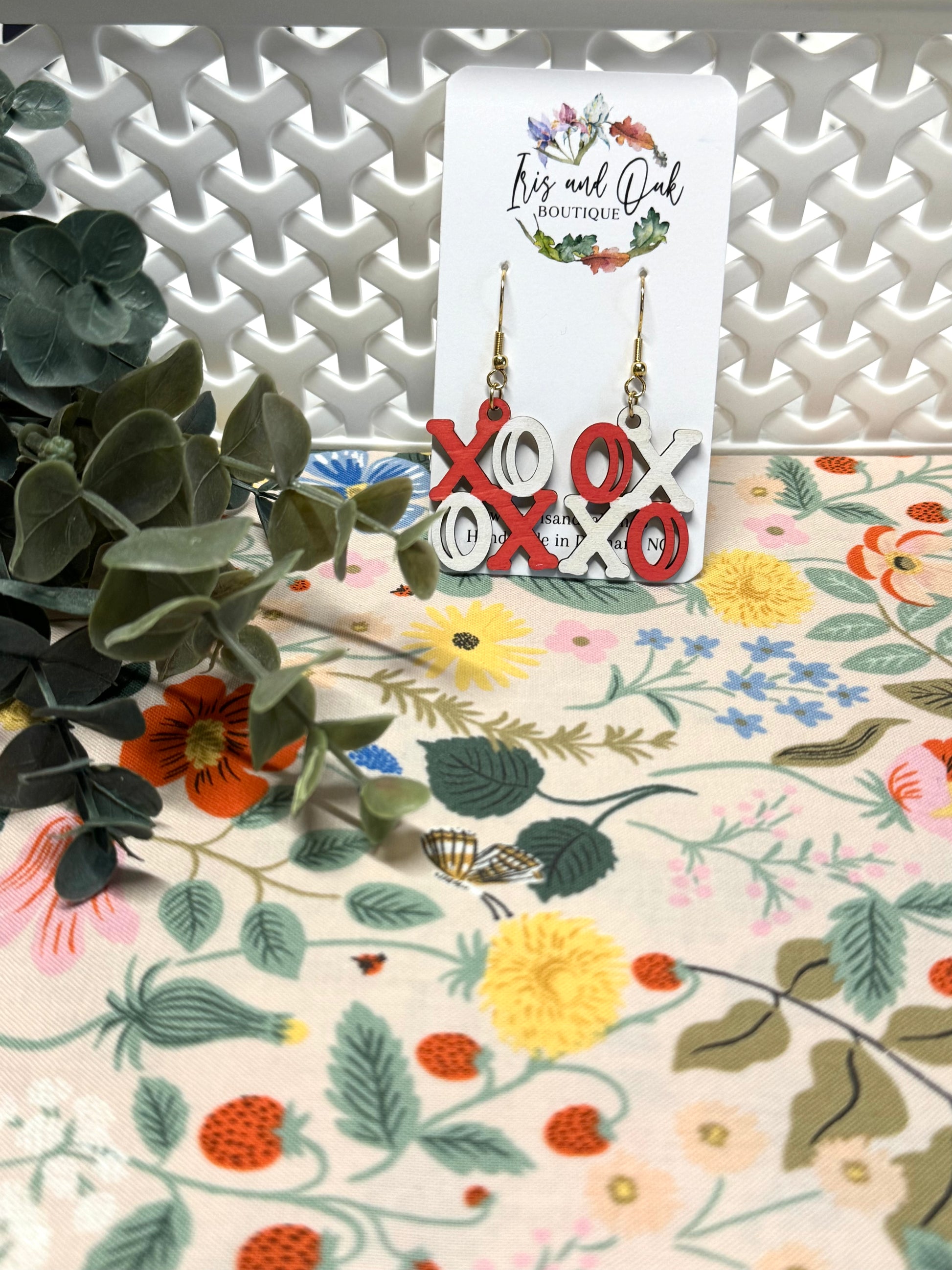 Spread some love with our "xoxo" red and white dangles! These handpainted wooden earrings are lightweight and perfect for a Valentine's themed outfit. Who says love can't be stylish?